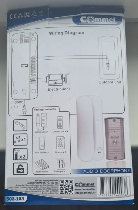 Prodajem Commel portafon koji dolazi sa vanjskom jedinicom, nov nekorišten.