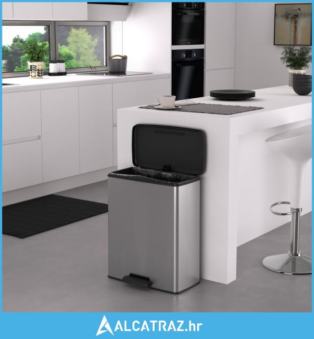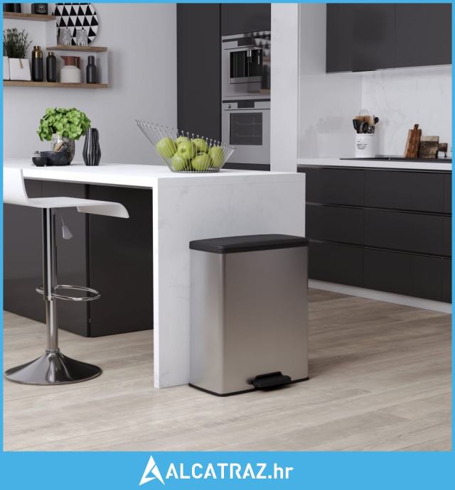 Ne hrđa, ne udubljuje se, lagana je, lako se čisti i ne vide se otisci prstiju na njoj. Ova kanta za smeće ima mehanizam za meko zatvaranje na poklopcu i veliku papučicu, zbog čega je higijenska i jednostavna za svakodnevno korištenje. Uz to, kanta za otpad ima antivakuumski sustav koji olakšava vađenje vrećice.