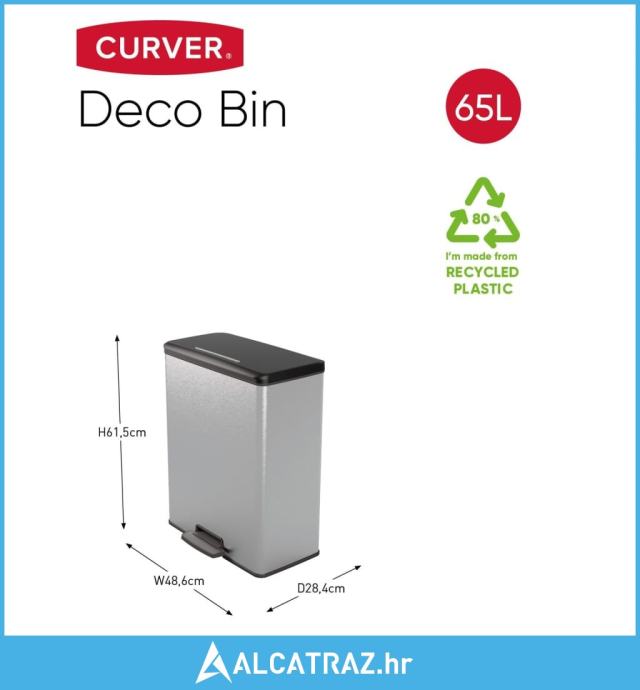 Asortiman Deco kanti marke Curver dizajnerski je san! Srebrna kanta s papučicom Curver Deco od 65 L ima metalni izgled i prednosti plastike.