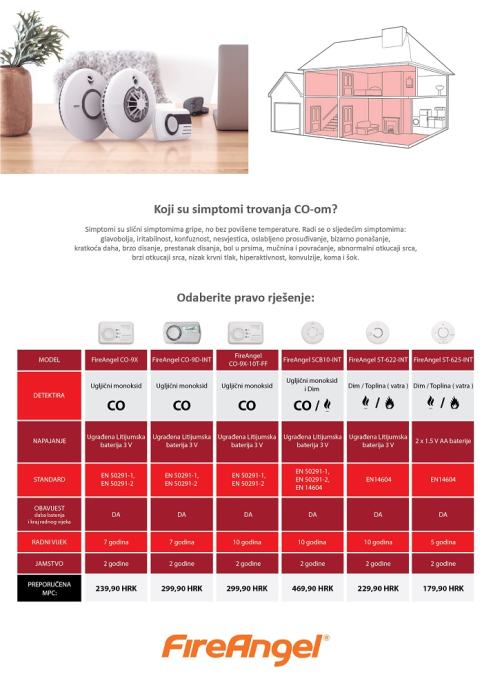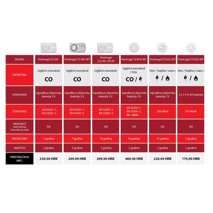 Detektor Carbon monoxida, alarm, 85 dB, LED indikator statusa, samotestiranje, CO test, elektrokemijski senzor, radna temperatura od -10 °C do 40 °C, vlažnost 30 - 90 %, ugrađena Litijumska baterija 3 V, radni vijek 7 godina, dimenzije 112 x 72 x 36 mm