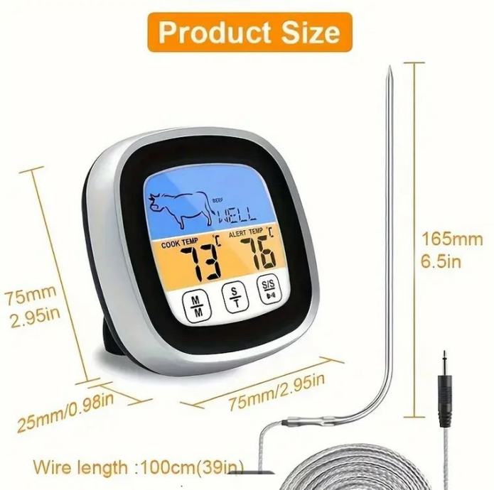 - Nehrđajuća čelična sonda za roštiljanje, kuhanje, pečenje i BBQ