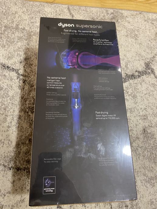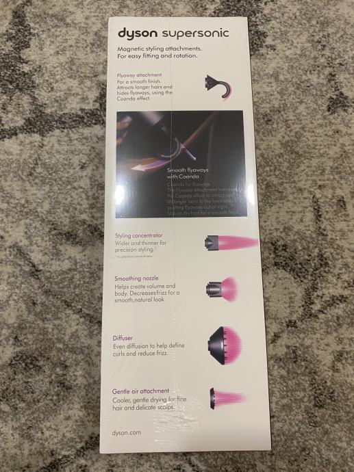 Prodajem novi, zapakirani Dyson Supersonic HD08 fen u kombinaciji s crnom bojom drške i ljubičastom bojom glave fena. Uz fen dobijete i još ostale dodatke koji se mogu vidjeti na slikama kutije. Idealno za Božični poklon i olakšano feniranje kose na različite načine.
