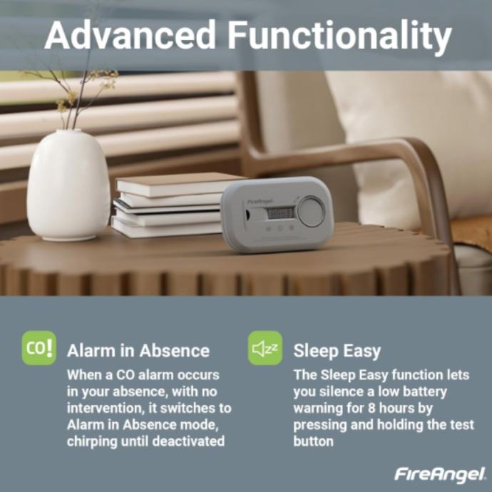 Ugljični monoksid (CO) je nevidljiv i bez mirisa, a često se naziva i “tihi ubojica”. Nastaje iz plinskih bojlera, peći, kamina ili generatora. Bez pouzdanog alarma teško ga je otkriti, a posljedice trovanja mogu biti ozbiljne. FireAngel prijenosni CO alarm pruža vam sigurnost i miran san, bilo kod kuće ili na putovanju.
