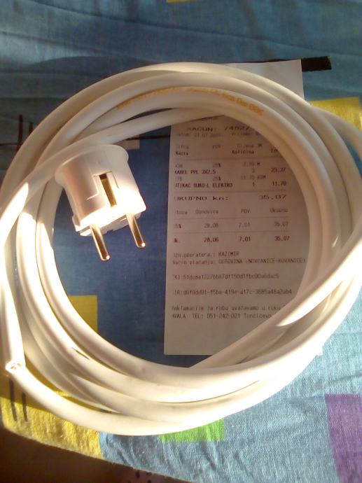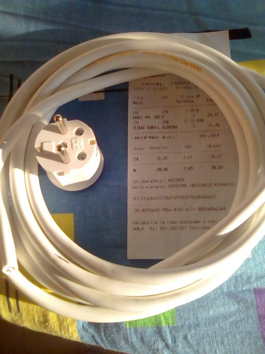 Kabel PPL 3X2,5 mm, 3 metara+ utikač, NOVO, prodajem ispod cijene.