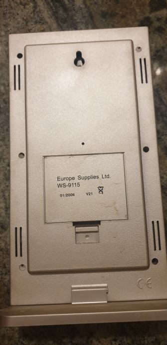 Korištena ali potpuno ispravna i funkcionalna kućna meterološka stanica Europe Supplies L.T.D. WS9115 koja se sastoji od Unutrašnjeg digitalnog modula i vanjskog . Oba dijela pokreću 2xAA tj. 3xAA baterije koje konektiraju preko radijskog signala.