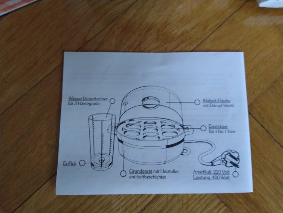 • uključena mjerna čaša i 6 komada posudice-drzac za jaja