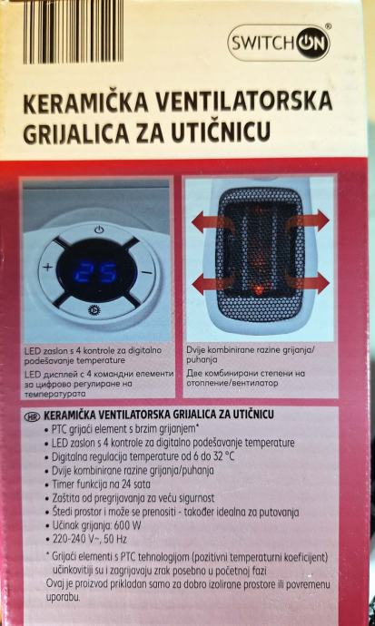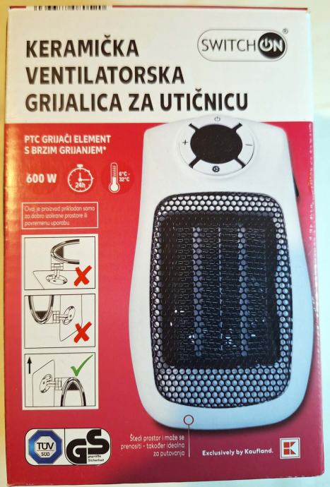 Mala keramička ventilatorska grijalica za utičnicu 600W