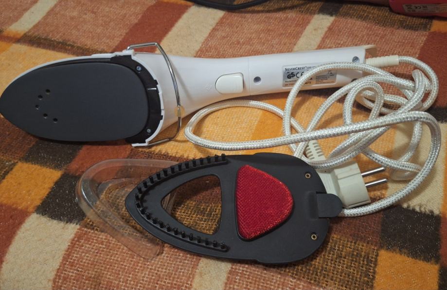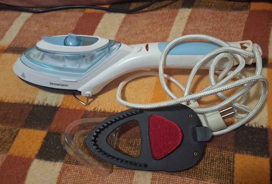 Jednom korištena,kao nova,ispravna. Uz nju dolazi dodatak koji ide na peglu sa cetkicama i jastučićem. Spremnik za vodu je odvojiv od pegle. Više info u poruci. Idealna za putovanja,sitne stvari prepraviti. 10 eura + ptt Marka silvercrest