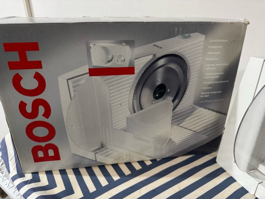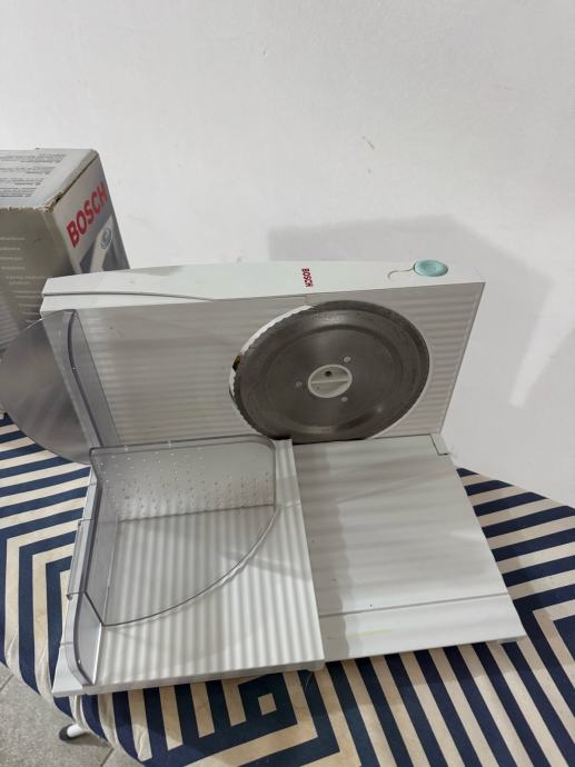Prodajem mesoreznicu Bosch u bijeloj boji s metalnom oštricom od nehrđajućeg čelika. Uređaj dolazi s originalnom kutijom. Namijenjena za rezanje mesnih prerađevina, sira i sličnih namirnica, s mogućnošću podešavanja debljine reza.