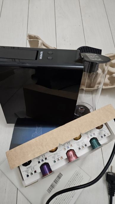 Prodajem potpuno novi Nespresso aparat model Essenza mini C 30 u crnoj boji. Kompaktan i elegantan dizajn savršen je za svaku kuhinju. Aparat je nekorišten, u originalnom pakiranju s vidljivim spremnicima za vodu i kapsule.