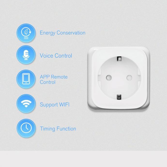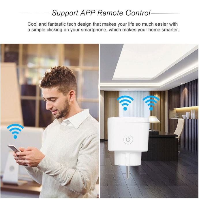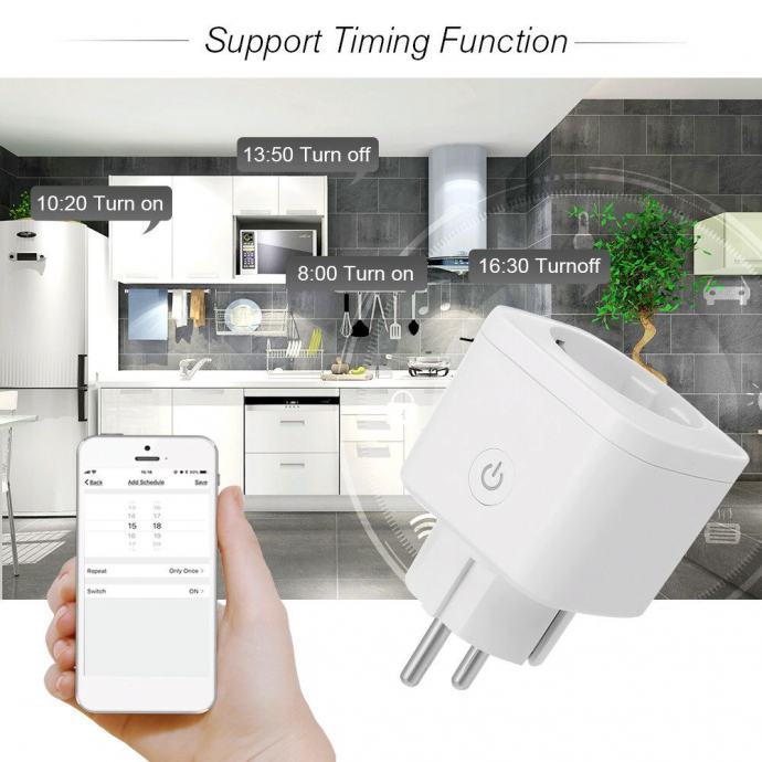Ovo je WiFi pametni utikač, kompatibilan s Amazon Alexa i za Google početnu IFTTT za govornu kontrolu, podržavanje dijeljenja uređaja i daljinski upravljač aplikacija telefona. Instalacija je jednostavna, sigurna i brza. Možete postaviti tajmere za uključivanje / isključivanje elektronike klikom na pametni telefon, što vaš dom čini pametnijim. Super dizajn za vas!