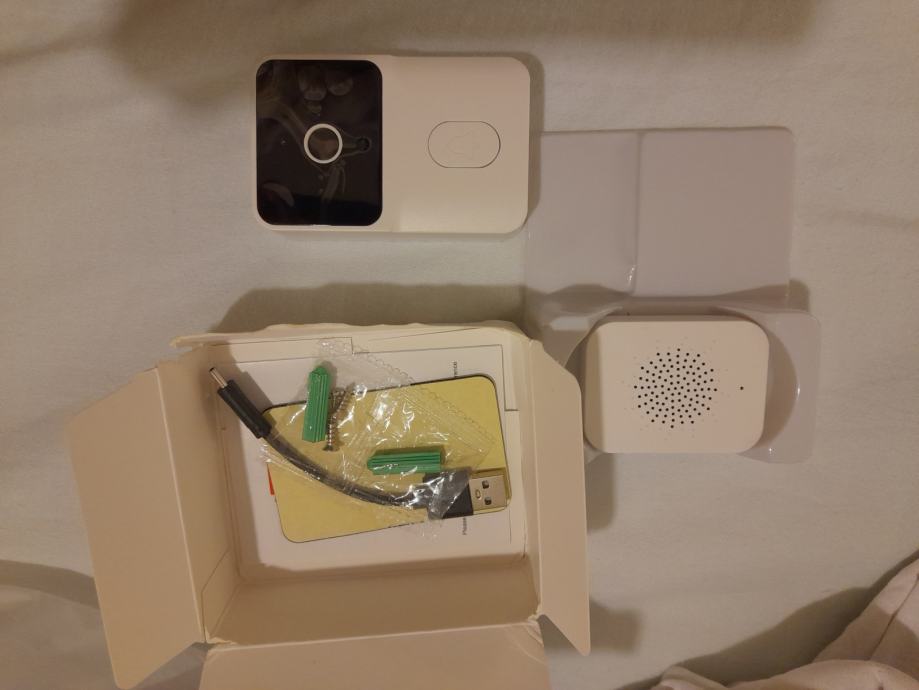 Vanjska jedinica (tipkalo i kamera) ima punjivu bateriju a unutarnja jedinica (zvono) se uključuje u struju preko usba (potreban je punjač -kao za mobitel (nije uključen u paketu))
