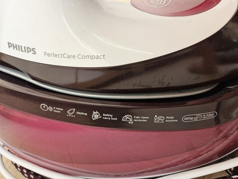 Philips PerfectCare Compact Brže glačajte odjevne predmete zahvaljujući snažnoj kontinuiranoj pari. Nema potrebe za prilagođavanjem temperature između odjevnih predmeta zahvaljujući tehnologiji OptimalTEMP. Uživajte u kompaktnom i laganom dizajnu koji omogućuje lakše spremanje.
