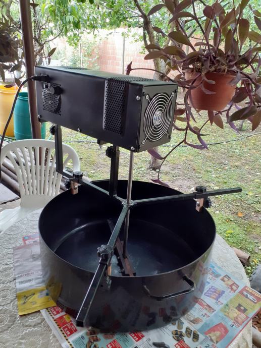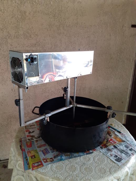 Mjesalica je podesiva po širini i dubini vaše posude .Regulacija brzine mješanja pomoću potenciometra ,radi na 220v ..Mješalica za ajvar i pekmez