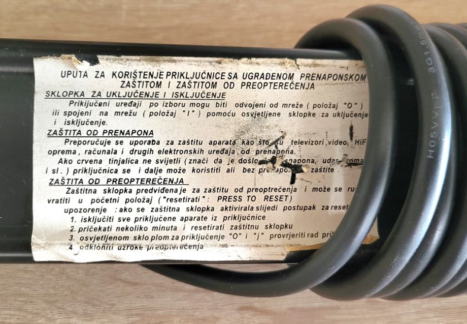 Produžni kabel / strujna letva, 5 utičnica, 3 m, prenaponska zaštita