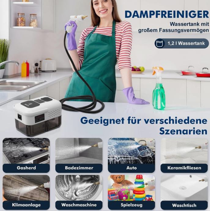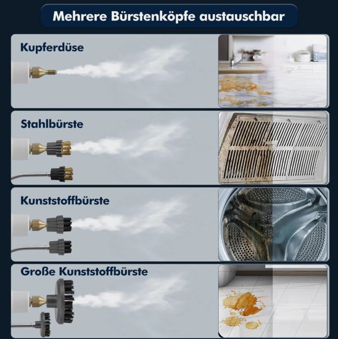 9 alata za čišćenje uključeno: Višenamjenski čistač dolazi s opsežnim setom od 9 dijelova pribora. Ovi svestrani alati omogućuju vam jednostavno čišćenje štednjaka, ploča za kuhanje, pločica, fuga, sofa, tepiha i unutrašnjosti automobila, pružajući cjelovito rješenje za vaše potrebe čišćenja kućanstva.