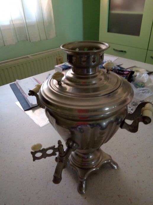 Prodajem novi samovar na struju, nije korišten. uz samovar prodajem i 6 originalnih šalica sa podmetačima. cijena samog samovara je 80 eura a sa šalicama i podmetačima je 100 eura.