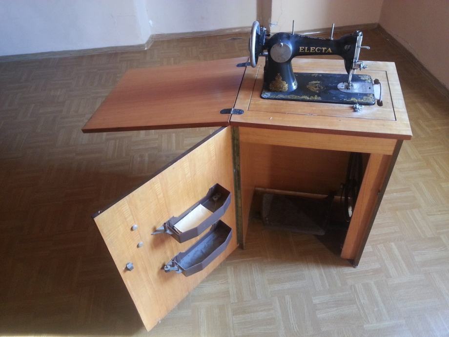 Šivaća mašina Electa sa postoljem, pripadajućim ormarom i pedalom