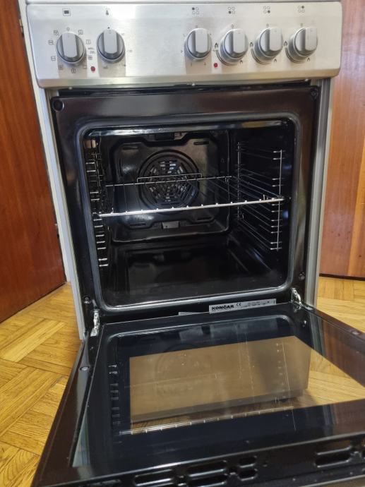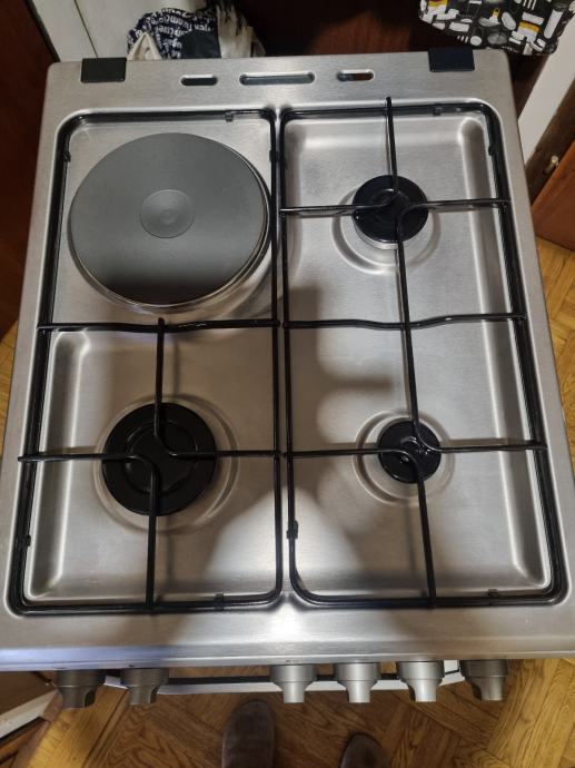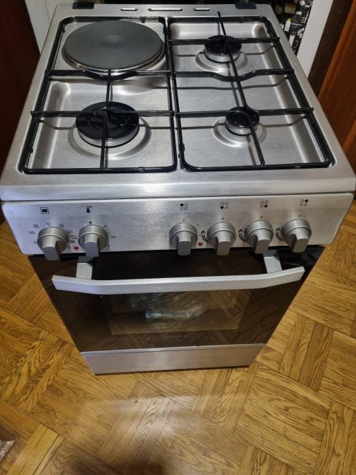 Prodajem INOX samostojeći kombinirani (3plin +1struja) štednjak Končar,priključak na zemni-gradski plin(moze i na bocu),pećnica na struju,korišten 10-tak puta,zbog selidbe u drugj stan koji ima kompletnu kuhinju sa svim uređajima pa je višak.Kupljen polovicom 2022g.Uz njega dolaze i 2 protvana u kompletu.