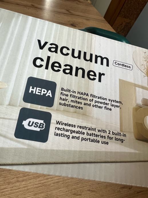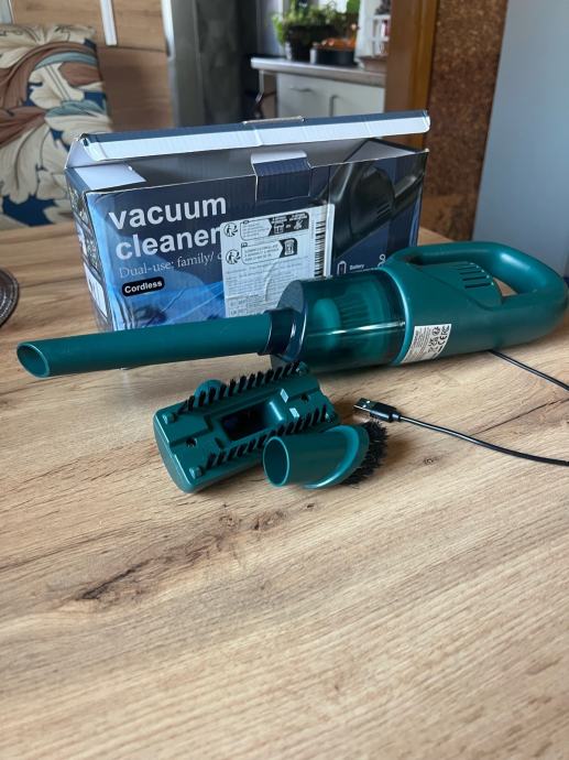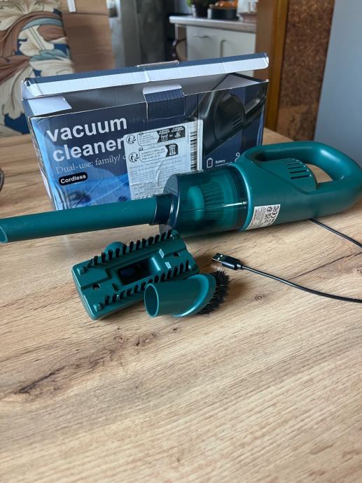 Prodajem mini bežični usisavač zelene boje. Radi se o kompaktnom, ručnom usisavaču koji dolazi s više nastavaka, uključujući četku i mlaznicu za uske prostore. Puni se putem USB kabela, a ima ugrađeni HEPA filter za fino filtriranje prašine, dlaka i sličnih čestica. Cordless izvedba omogućuje slobodno korištenje bez kabela.