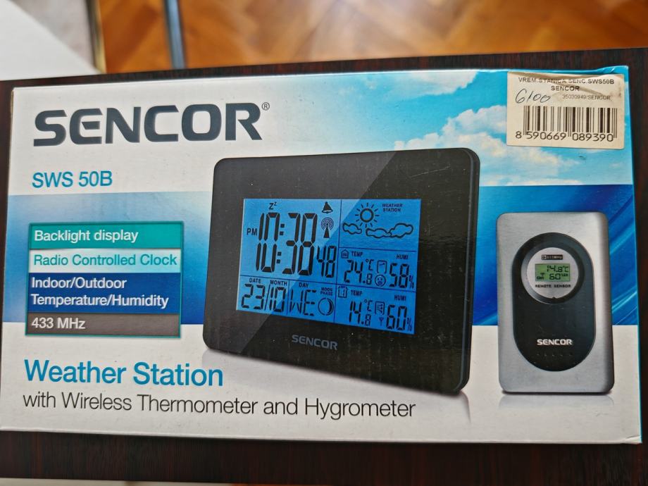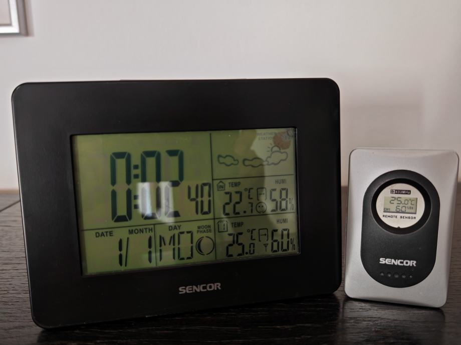 Prikaz unutarnje temperature, unutarnje vlažnosti, vanjske temperature, vanjske vlažnosti