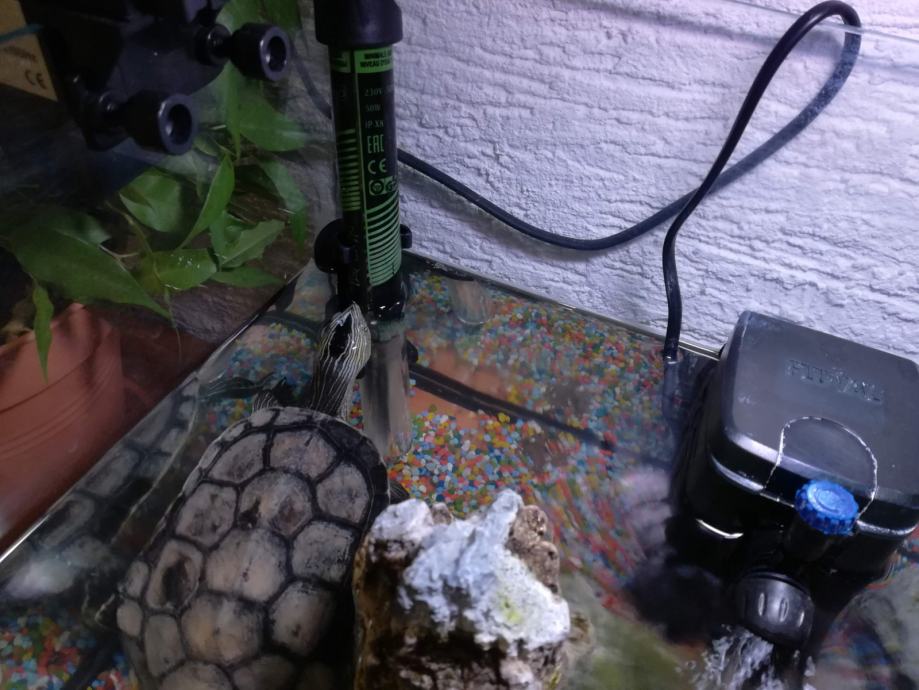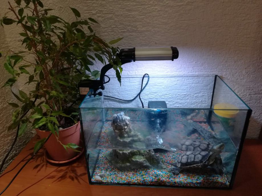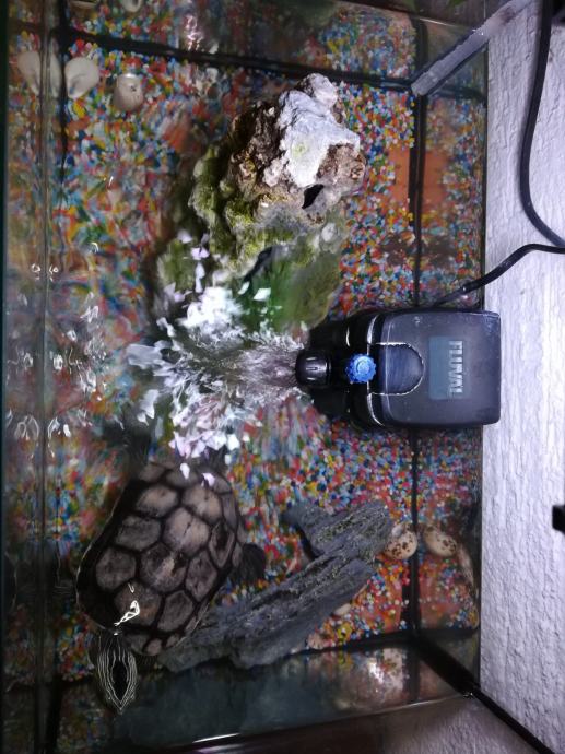 Prodaje se žutouha akvarijska kornjača zajedno sa akvarijem koji je opremljen: