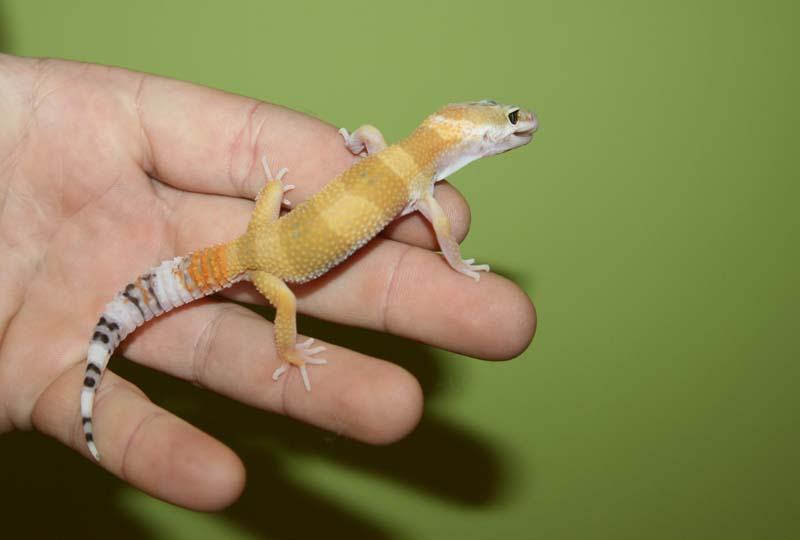 Mladi mužjak leopard gekona, morf Super hypo carrot tail.