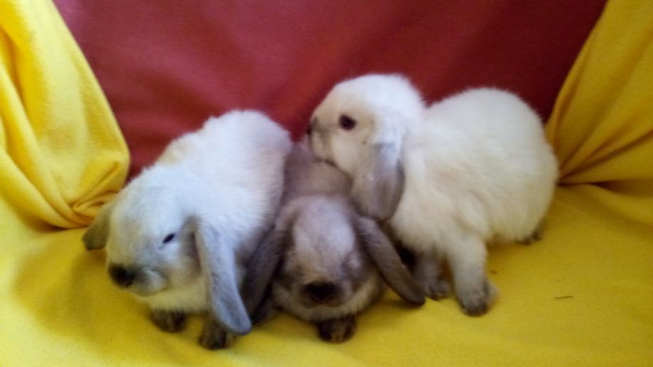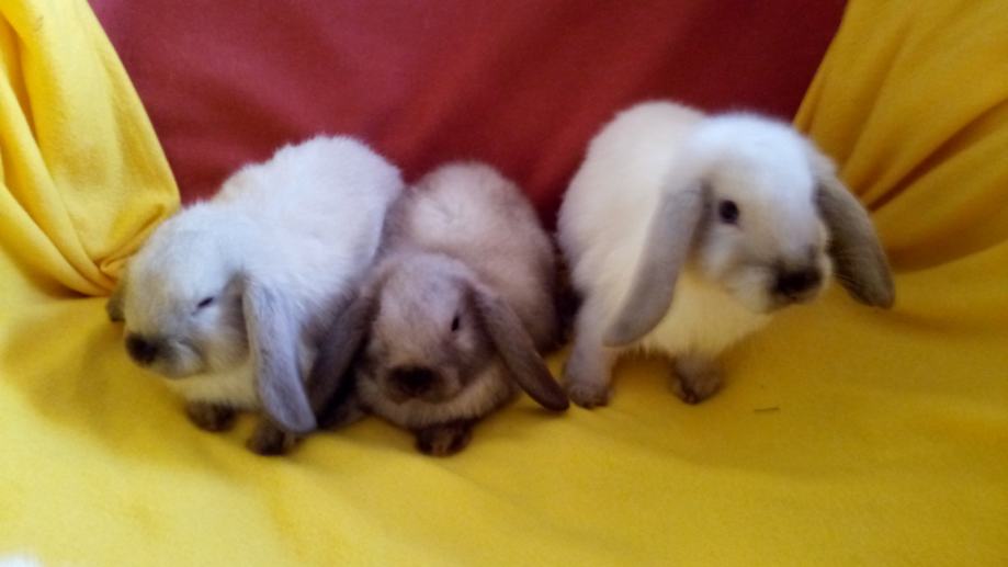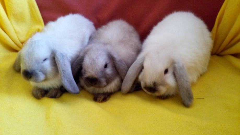 Kunići su iz kontroliranih mini lop uzgojnih linija (male težine, od 1,8kg mužjaci i do 2,2kg ženke). Na slikama su od beba starih 3tj do odraslih (da vidite kako izgledaju kad narastu).