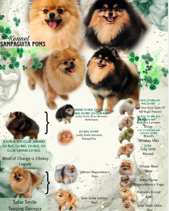 Tata je JCH RUSSIA, JCH CLUB, JGRAND CH RUSSIA, CH RUSSIA, CH CLUB, GRAND CH RUSSIA, CH SLOVENIA. Odlično ocijenjen na preko 20 izložbi, odlično ocijenjen na uzgojnom pregledu. Mama je odlično ocijenjena na izložbama i uzgojnom pregledu. Sve dokumente roditelja je moguće provjeriti te ih vidjeti kod nas.