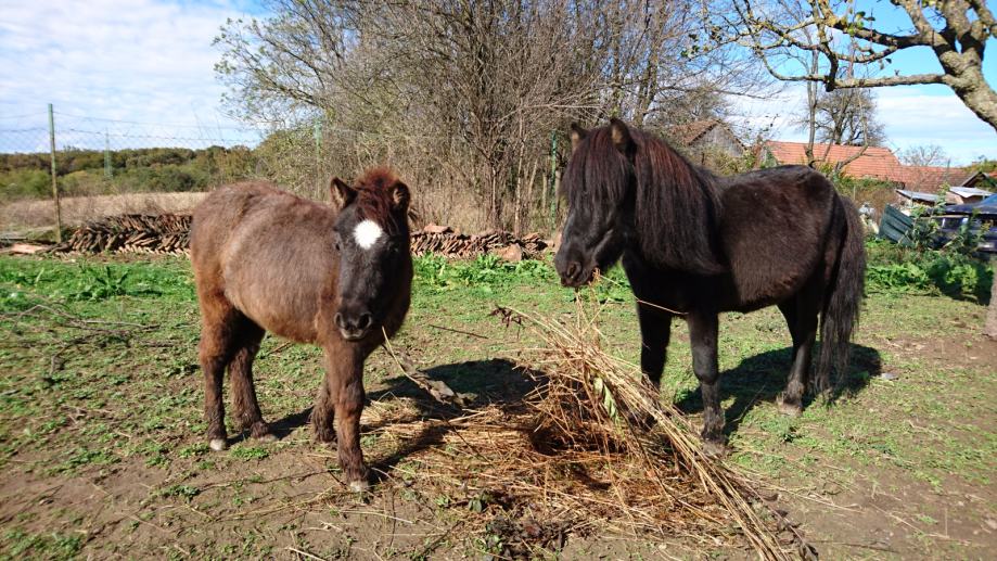 Poni konji kobila ždrijebna 4 mjeseca bijela i njeno ždrijebe staro 7 mjeseca cijena 600 eura zajedno