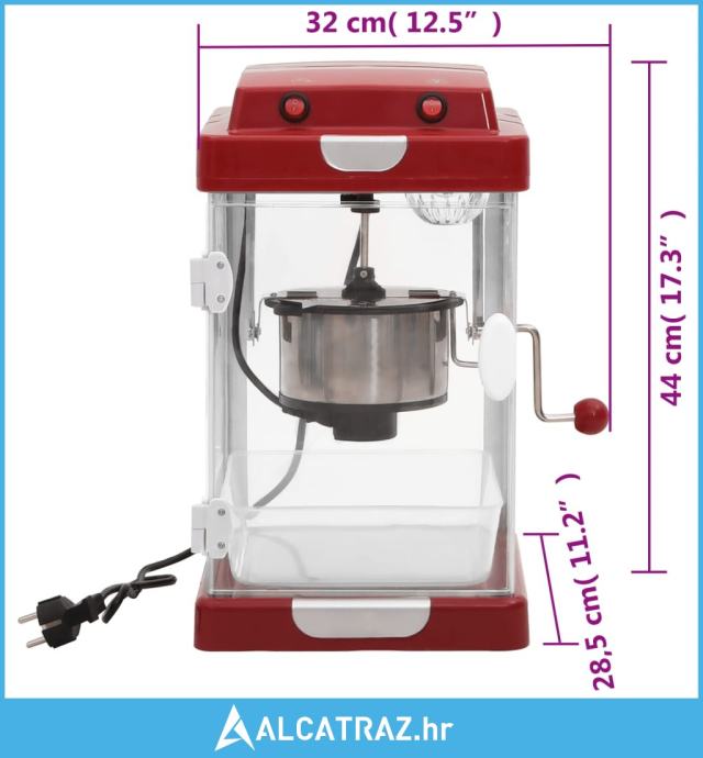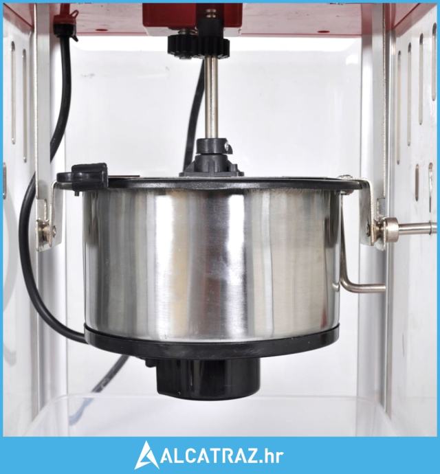 Aparat za kokice svojom elegantnom stilom bit će hit svake zabave. Stroj ima posudu od nehrđajućeg čelika od 71 gr s ugrađenim sustavom za miješanje i napravi do 10 šalica kokica po seriji.