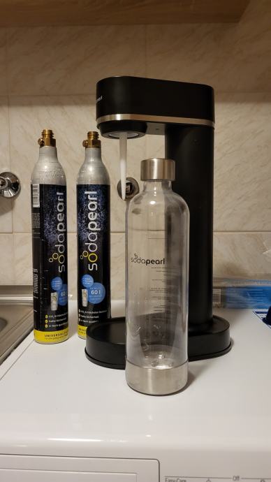 Prodajem praktički novi aparat za pripremu soda vode Sodapearl (korišten svega 3 mjeseca). Uz aparat u kompletu ide posuda za pripremljenu soda vodu od 1 litre, te dvije dodatne boce za CO2, koje se inače mogu zamijeniti u Intersparu za pune.