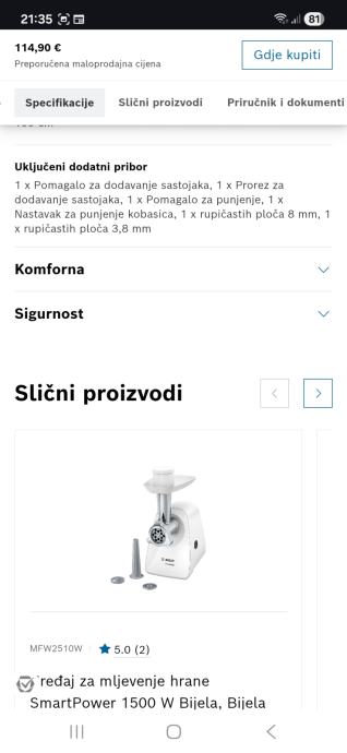 Bosch uredjaj za mljevenje mesa, bosch mfw2514w.