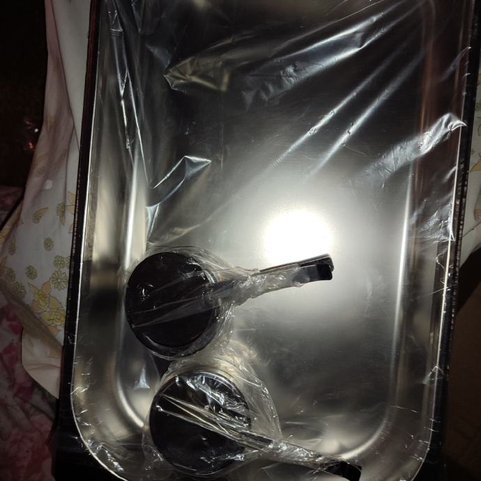 Profesionalni veliki grijač hrane, za luksuzno serviranje u restoranu ili kod kuće u posebnim prigodama, 2 komada, nova, zapremnine oko 9 litara, svaki sa 2 grijača i gelom za zagrijavanje, poklopac s predivnom ručkom, posuda s dvije ručke, stalak, podloga, znači ima 6 dijelova, prodajem u paru ili pojedinačno.
