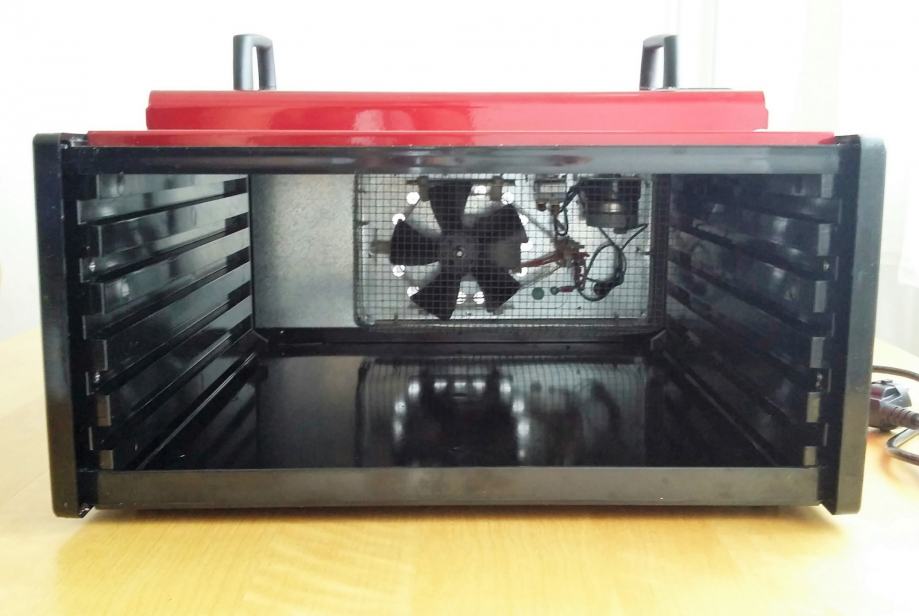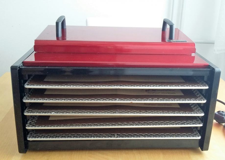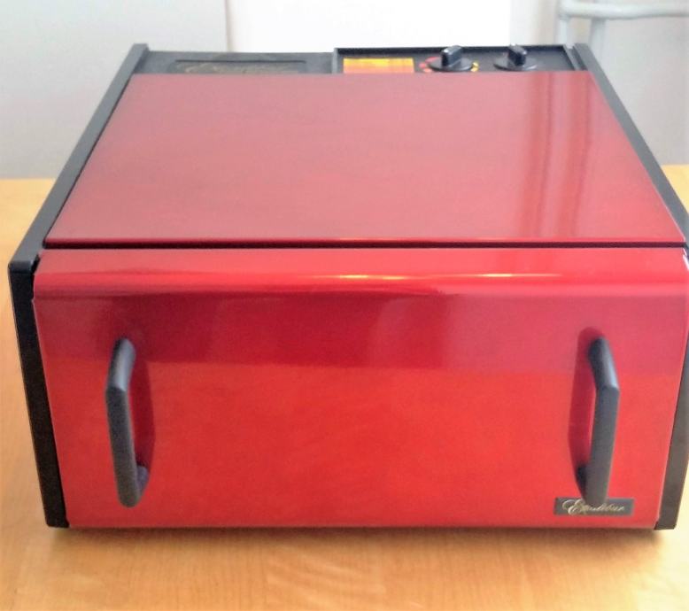 Prodajem malo korišten, 10g. star Excalibur dehidrator. Ovaj model s pet polica, čije su površine iste kao i kod modela s devet polica, optimalno je rješenje za osobe koje ne planiraju sušiti veće količine voća i povrća ali žele imati dovoljno prostora za pripremu raznih obroka za čitavu obitelj. Na taj način postignut je kompromis između uštede prostora u kuhinji s jedne strane i dovoljne površine za dehidriranje namirnica s druge strane.