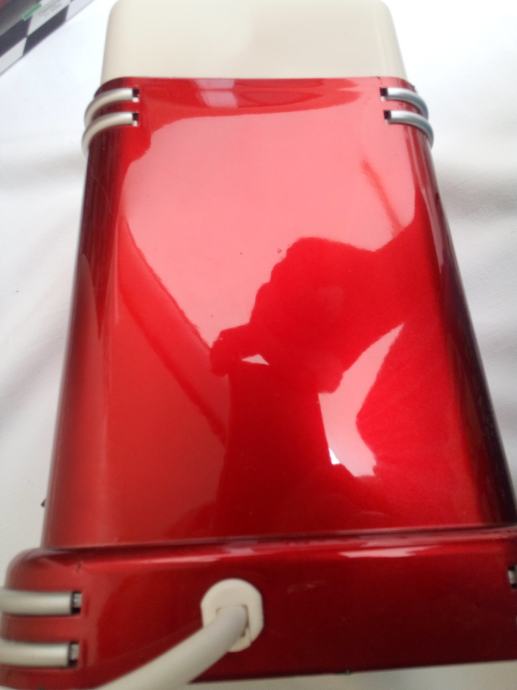 Ispravan i doslovno dva puta korišten. Slike uz oglas vjerno prikazuju njegov izgled. Na lakiranim dijelovima, tj. kućištu i poklopcu nema ogrebotina, ali ima sitnih točkastih tvorničkih grešaka, koje su neupadljive i vide se samo pod nekim kutom gledanja. Možda ih i ne bi trebao spominjat. Na prozirnom okviru od pleksiglasa ima neupadljivih ogrebotina koje su nastale uslijed čišćenja sa grubom stranom spužvice za pranje posuđa. Nisam predvidio cjenkanje i molim one koji u to ne vjeruju da se ne javljaju.