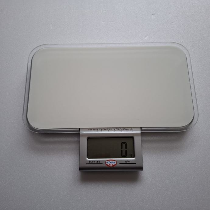 Praktična kuhinjska vaga s digitalnim mjeračem koji mjeri najviše do 10 kg.