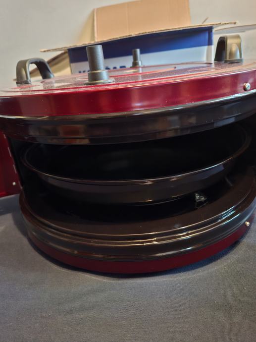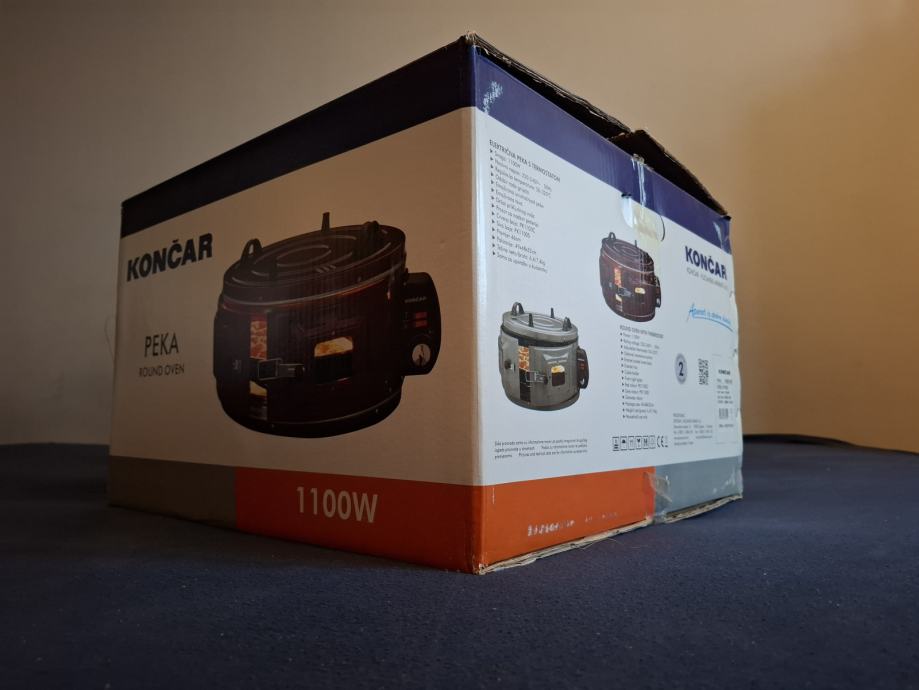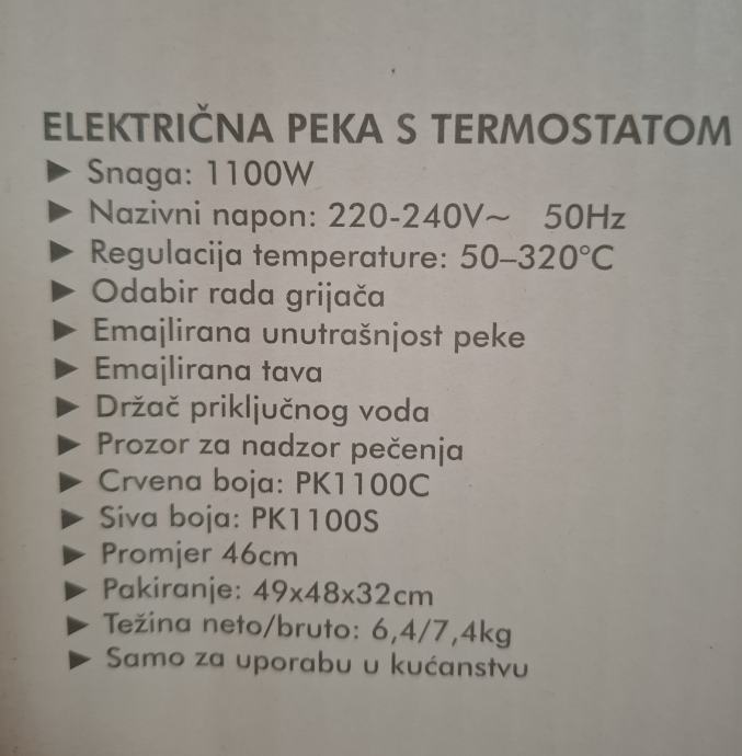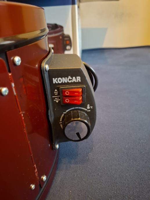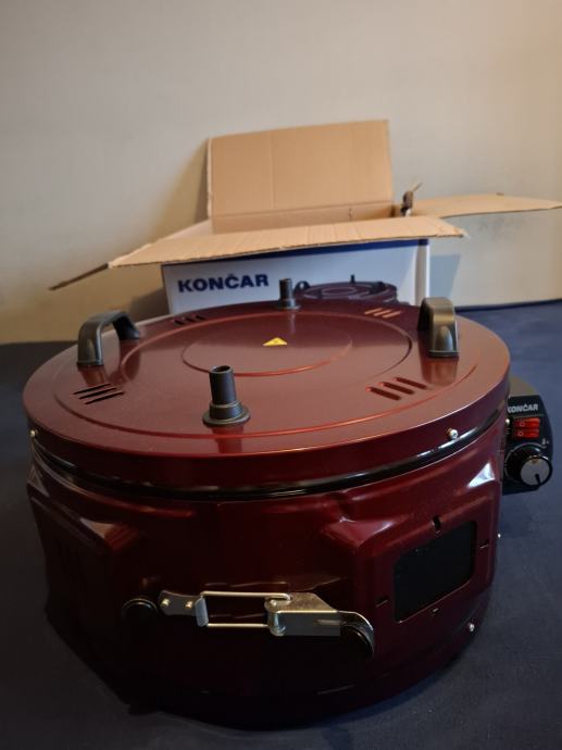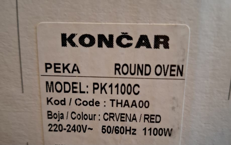 Električna peka „Končar PK1100C“, crvena, snaga 1100 W, promjer 46 cm, nekorištena i u originalnom pakiranju