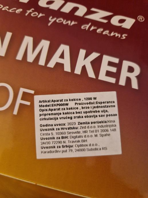 Prodajem nov aparat za kokice na bazi cirkulacije vrućeg zraka, bez upotrebe ulja