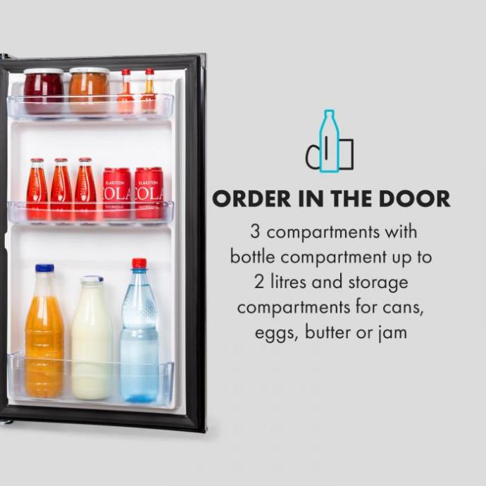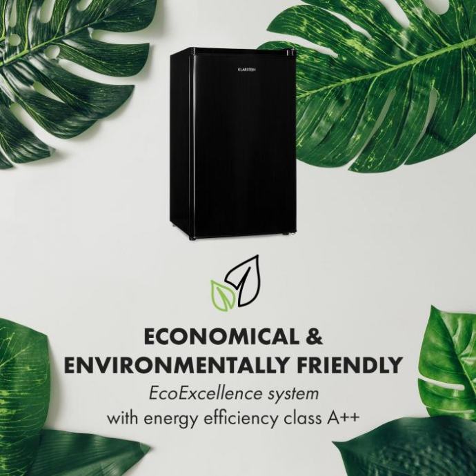 Hladnjak sa zamrzivačem Klarstein Cool Cousin cjelokupnog kapaciteta 80 litara jamči odličnu organizaciju uskladištenih namirnica u manjim kućanstvima.Zahvaljujući dvoma uklonjivima staklenim policama i 69L rashladnom prostoru s Compact Cool konceptom, u hladnjaku ima mjesta za namirnice najrazličitijih veličina i sastava. Boce do 2L, limenke i osvježenja moguće je smjestiti u tri samostalne police u vratima, a svježe se povrće može pospremiti u posebni uklonjivi pretinac, koji čuva krastavce i salatu na gotovo 0 ° C, što znatno produžuje svježinu u odnosu na uobičajene pretince za povrće.Uklonjivi dijelovi olakšavaju čišćenje.Posebnost uređaja Klarstein Cool Cousin je veliki zamrzivač kapaciteta 11 litara za dugotrajno skladištenje namirnica, poput smrznutog povrća, krumpirića ili pizze.Dopadljiv dizajn uklapa se u gotovo svaki prostor i životni stil. Hladnjak sa zamrzivačem Klarstein Cool Cousin je idealan za upotrebu u studenstkim domovima ili jednočlanim kućanstvima. Hlađenje uređaja pripada klasi energetske učinkovitosti A++ te je tijekom rada razina buke koju stvara izuzetno niska, svega 41 dB, što štedi novčanik i živce.