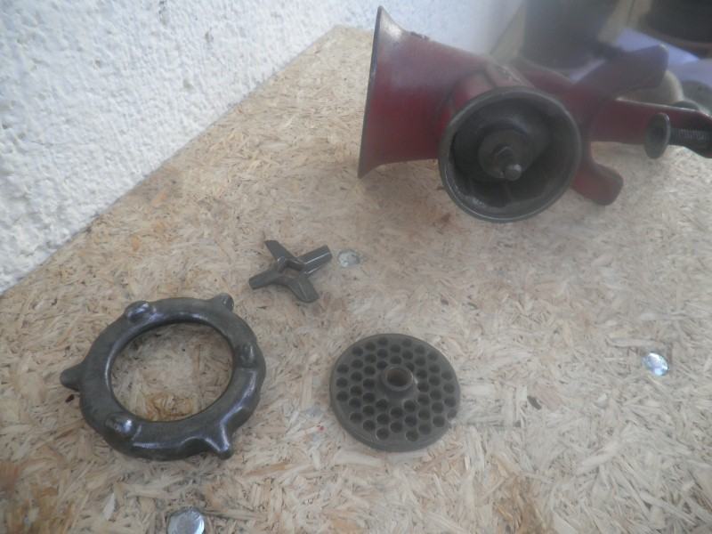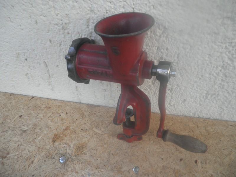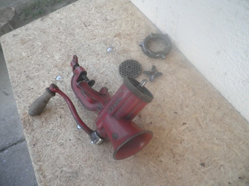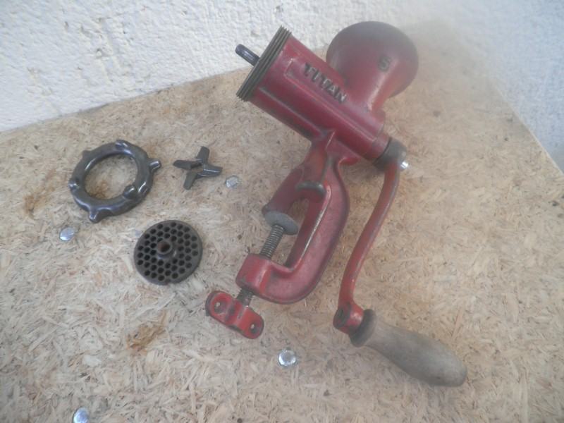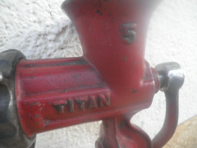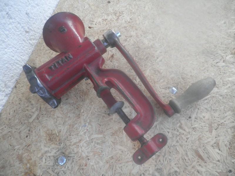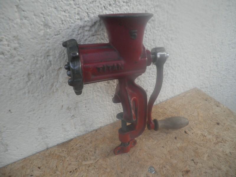 Kompletna mašina za meso TITAN broj 5 sa sitnom šajbom uvijek neophodna za luk , .... čini mi se da je ručka varena , ... ali zato za samo 50 kn !!!