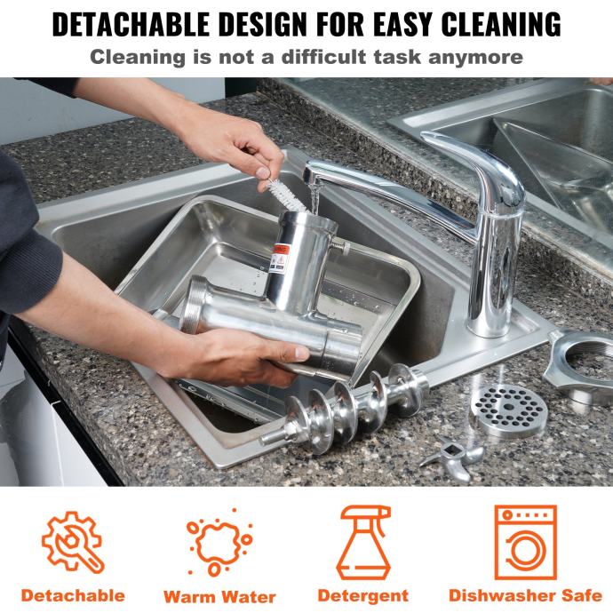 Pomoćnik s pet zvjezdica za pripremu hrane: brzo pripremite govedinu, piletinu, puretinu, bizona, divljač i drugo meso u svojoj kuhinji uz ovaj svestrani stroj za mljevenje mesa koji može samljeti čak i pileće kosti i smrznuto meso! Također može lako napraviti kobasice i može se koristiti u raznim primjenama, kuhinji, restoranu, trgovini za preradu hrane, korporativnoj upotrebi itd. Savršen je pomoćnik za rezanje mesa.