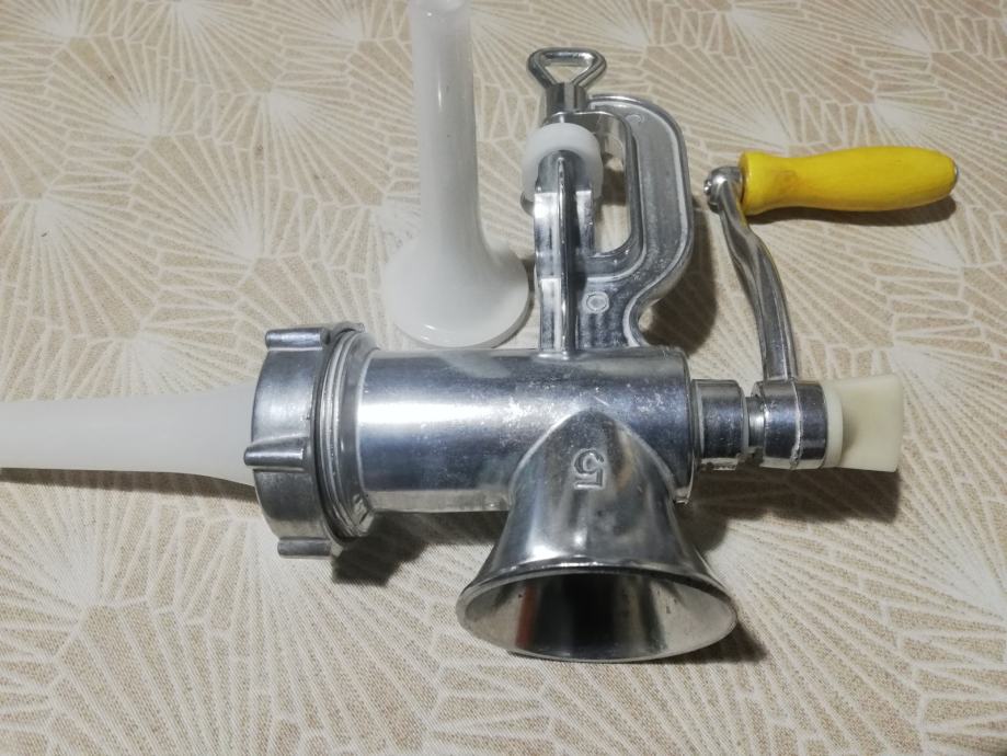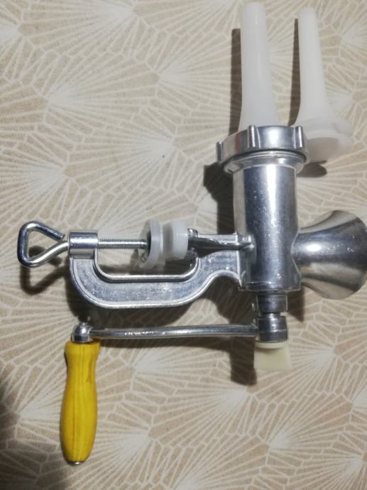 Prodajem mašinicu za mljeveno meso, uz dodatak koji služi za izradu tj punjenje kobasica. Mašinica je izrađena od čvrstog metala. Za kučnu upotrebu.