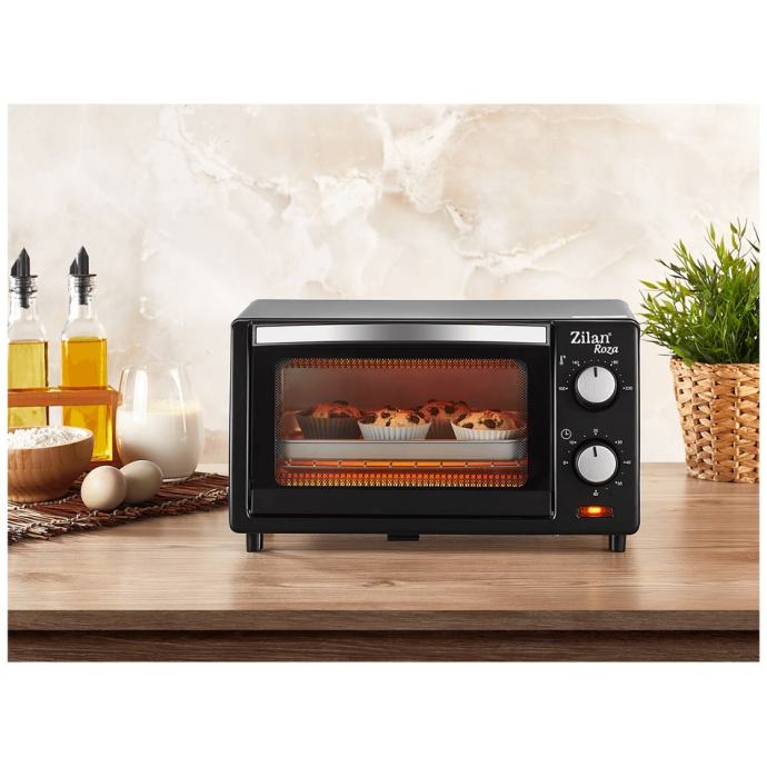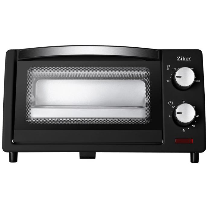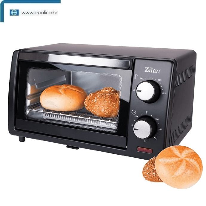 Mini pećnica Zilan, ZLN4328, snaga 800 W, unutarnj azapremina 9 lit., tajmer sa zvonom, dvostruko zastaklena vrata, 2 kvarcna grijača, ladica za mrvice, kromirana rešetka, 1 četvrtasti pleh.