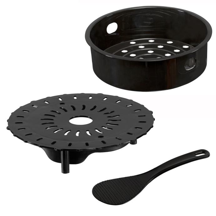 Osiguravajući potpunu sigurnost zahvaljujući potpuno zabrtvljenom poklopcu za zaključavanje, ovaj višenamjenski lonac za kuhanje pod pritisak dolazi s lopaticom, košarom za paru, posudom i mjernom posudom za pokrivanje svih vaših potreba za receptima.