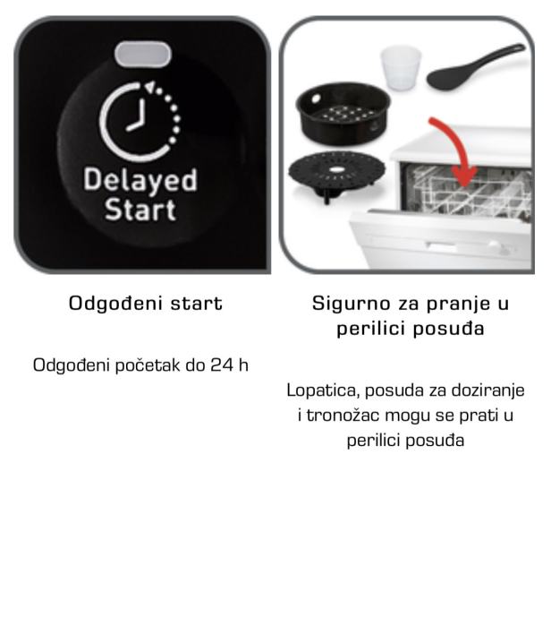 Praktične značajke zaokružuju ovaj komplet, uključujući funkcije odgođenog početka i zadržavanja topline - i do 24 sata.