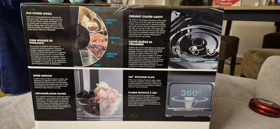 Snage 700W, s funkcijom odmrzavanja, 5 razina snage, keramičkim unutarnjim premazom i tajmerom do 35 minuta. Ima staklena vrata.