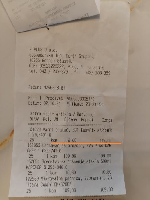 Prodajem parni čistač Karcher za 90 eura (plaćen 119 eura) korišten svega 2-3 puta. Moguće pogledati i preuzeti u Varaždinu. Upit na broj 091 400 1268.