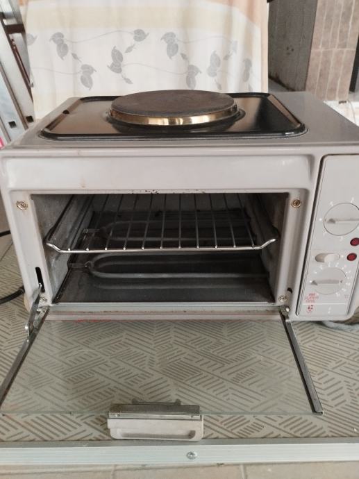 Mini pećnica sa kuhalom na struju, pećnica nekorištena, pogodno za male prostore, brodove,sobe, vikendice vrlo jeftino prodajem.