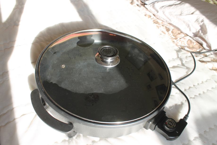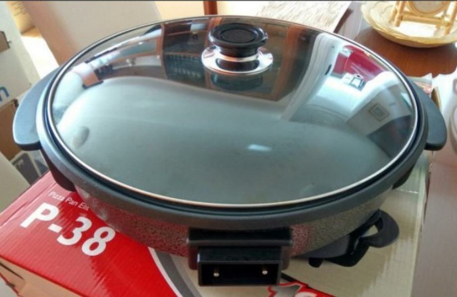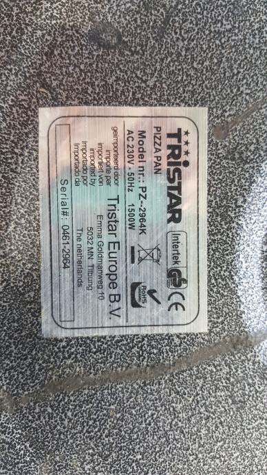 Pekač za pice Tristar promjer 38 cm sa termostatom . Unutrašnjost teflon korišten jednom .Mogu se peči palačinke , tortilje sve što zamislite .